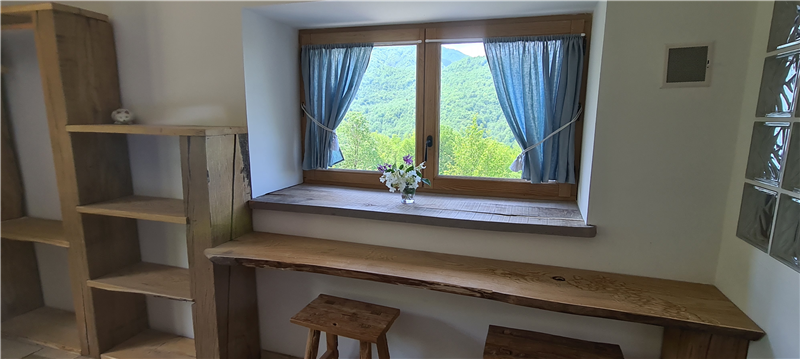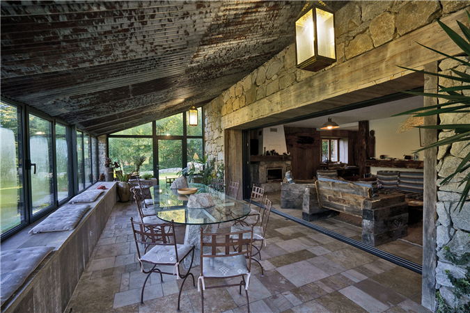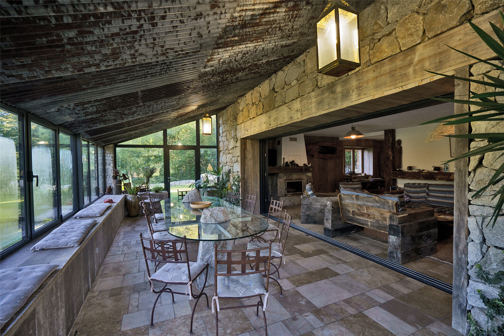 The same materials found around the house have been used inside: solid wood, granite, raw stone and old beams. We have also given an important place to green plants, which grow freely indoors as if nature itself had entered the house.