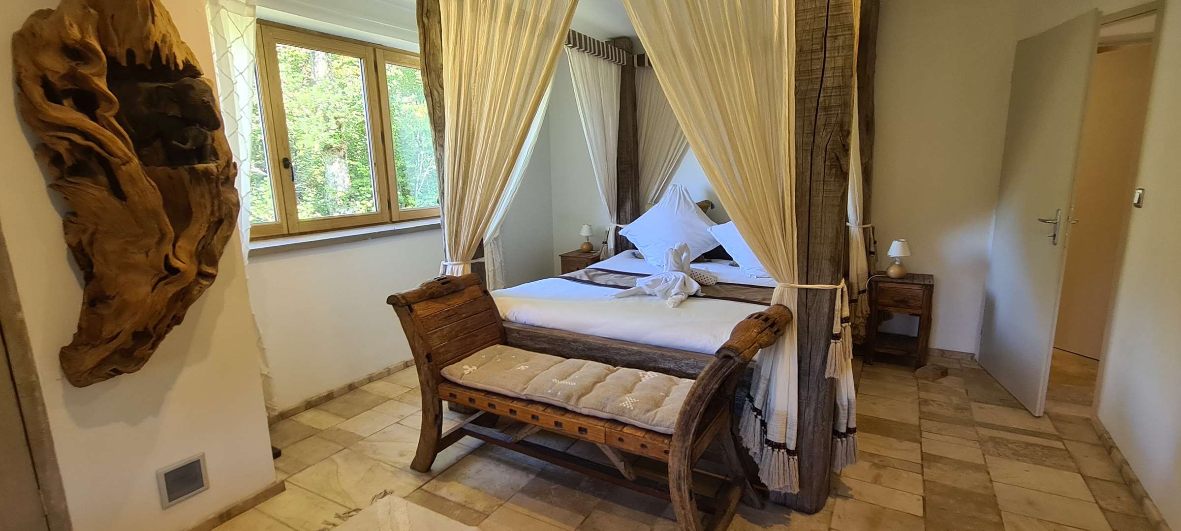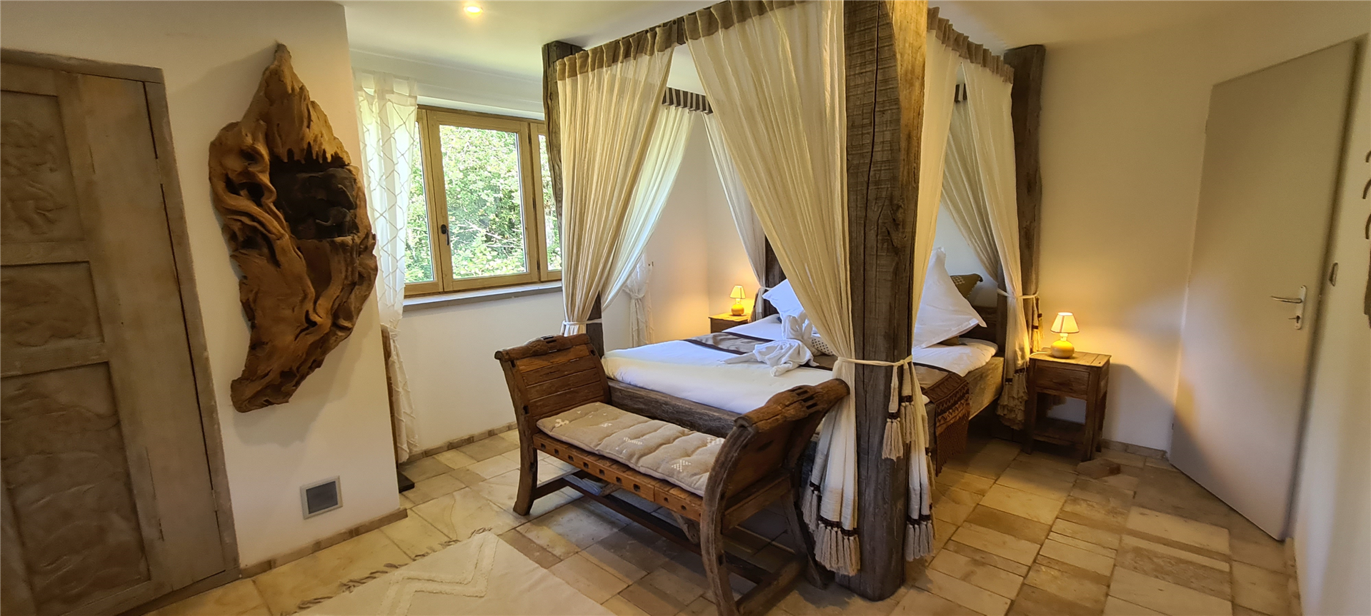 Nothing here is standard. Every piece of furniture, every bed, every bathroom is handmade. This gîte looks nothing like a hotel or a modern house — you will see things here that you will not find at home or anywhere else.